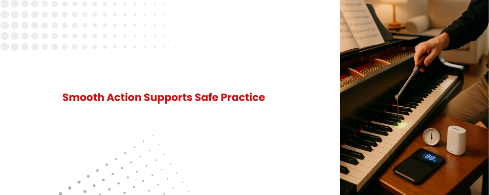 Player health is also a factor. Research on musculoskeletal issues in piano students shows that poor regulation (uneven key depth or stiff action) increases strain on hands and wrists. Regular maintenance ensures smoother action, helping pianists practice comfortably and safely.